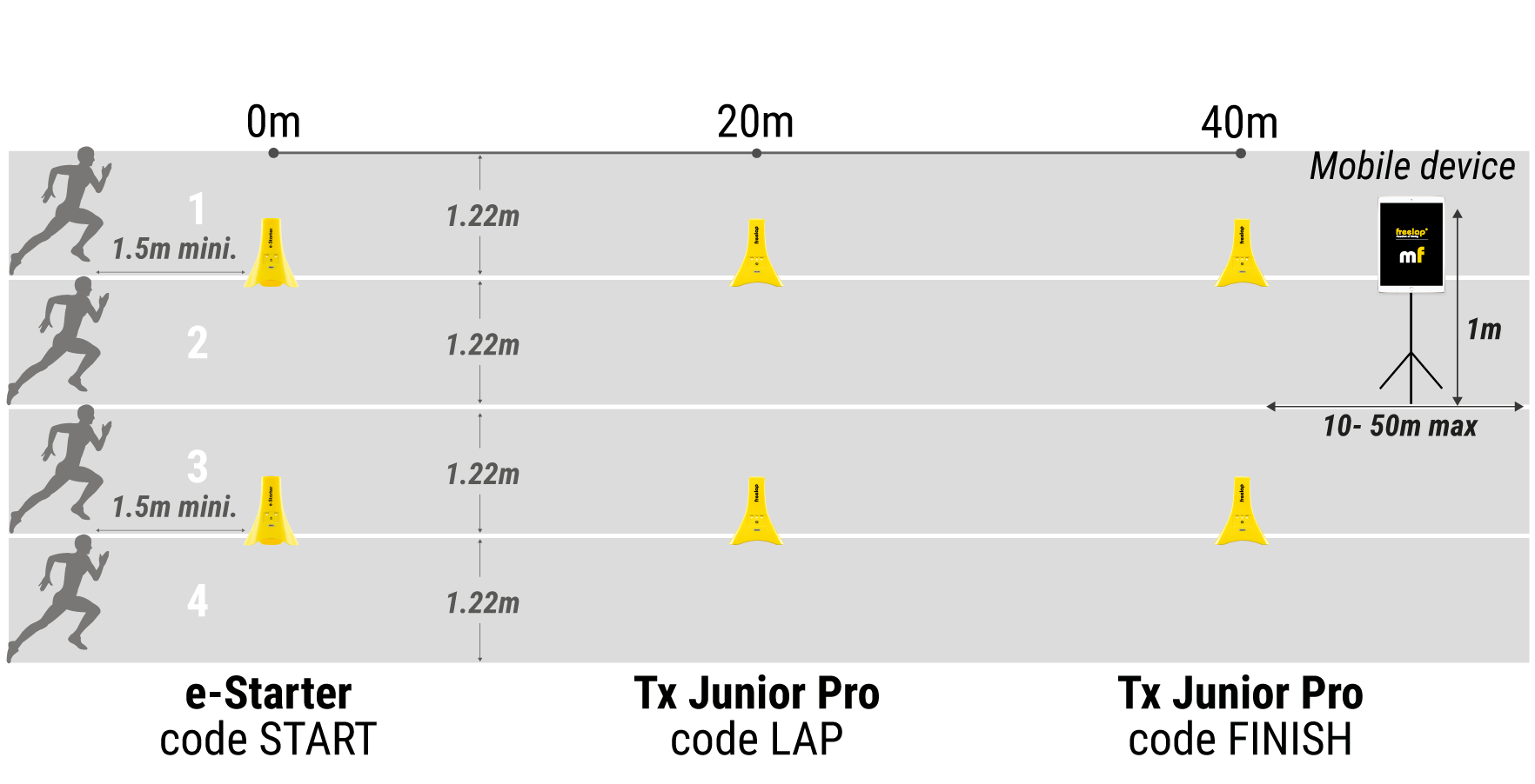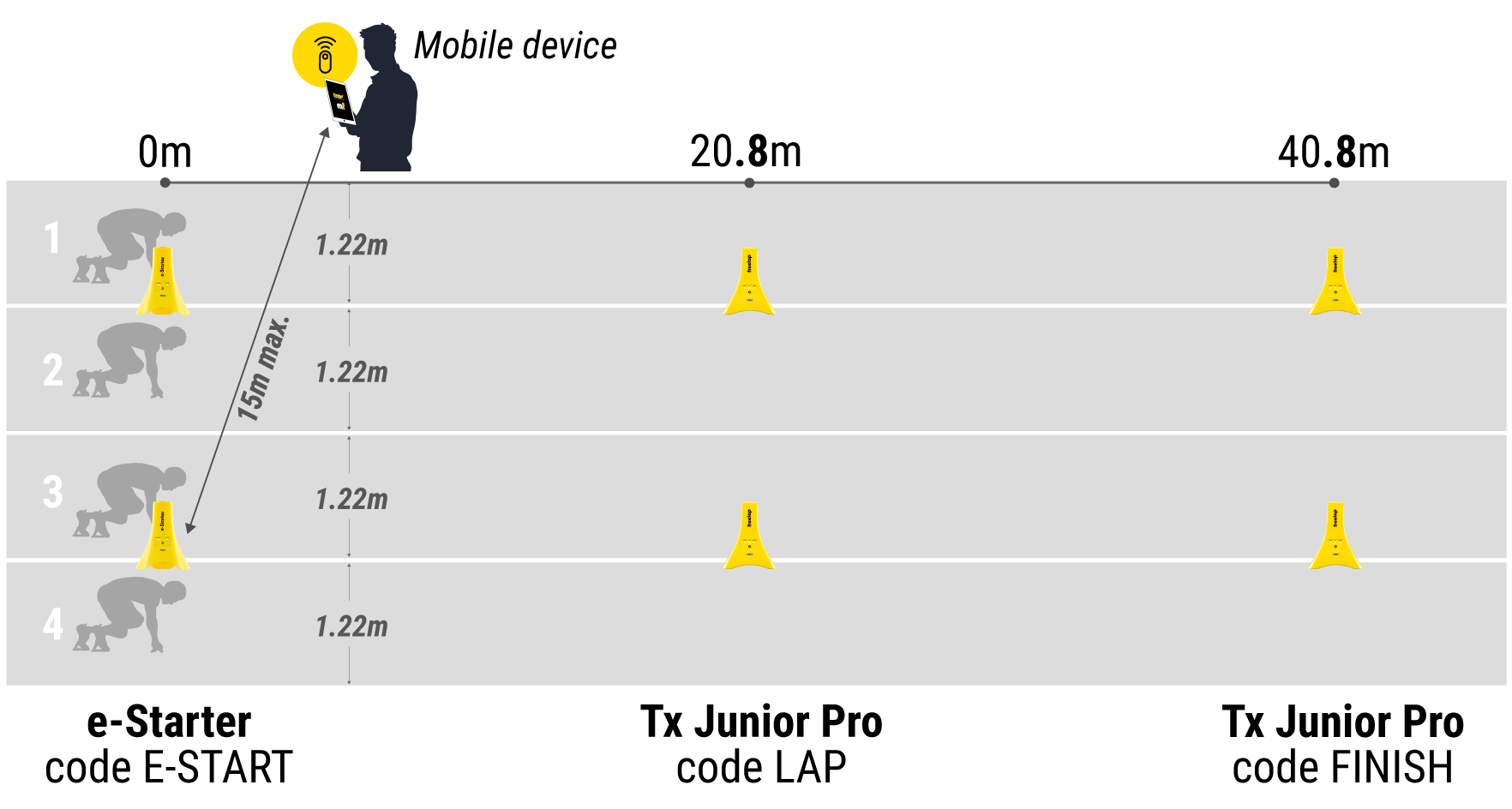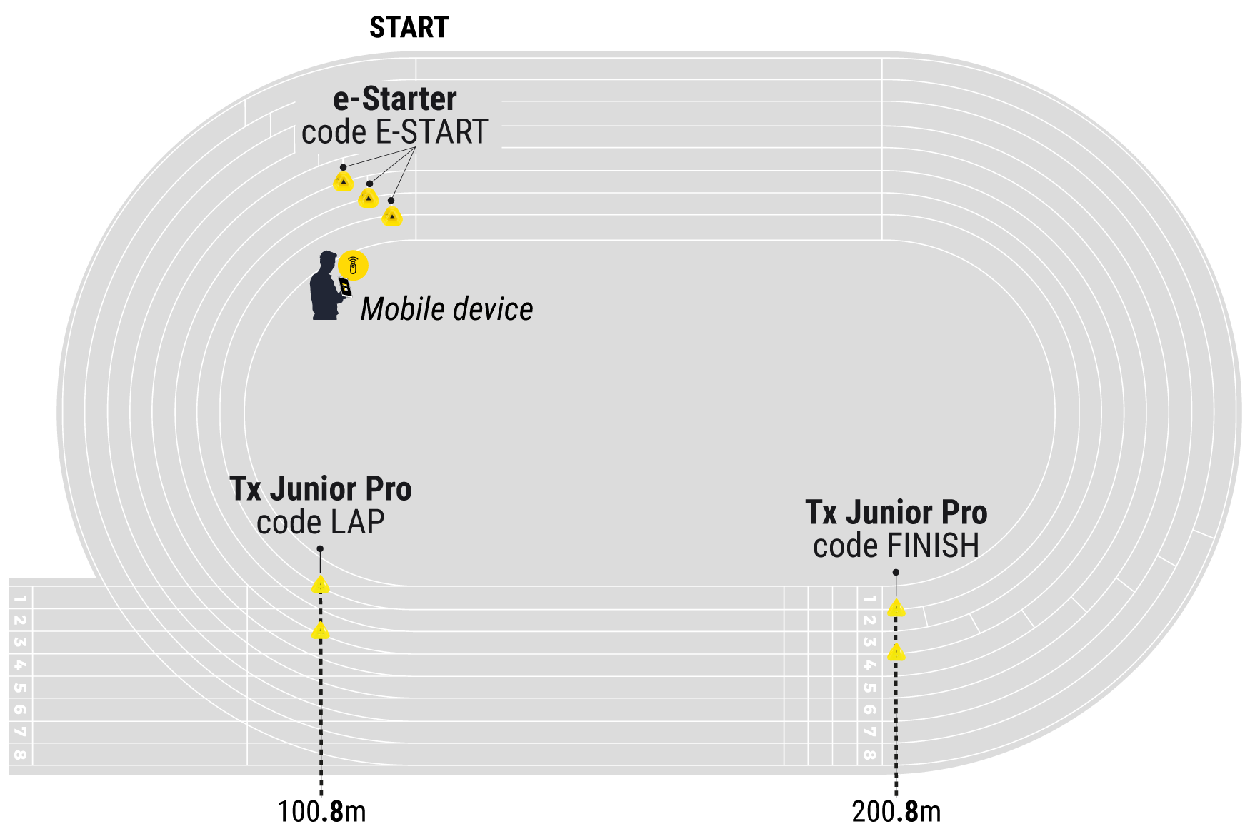 Athletes can be timed down the straight or an a stagger with the coach having full control of the start.